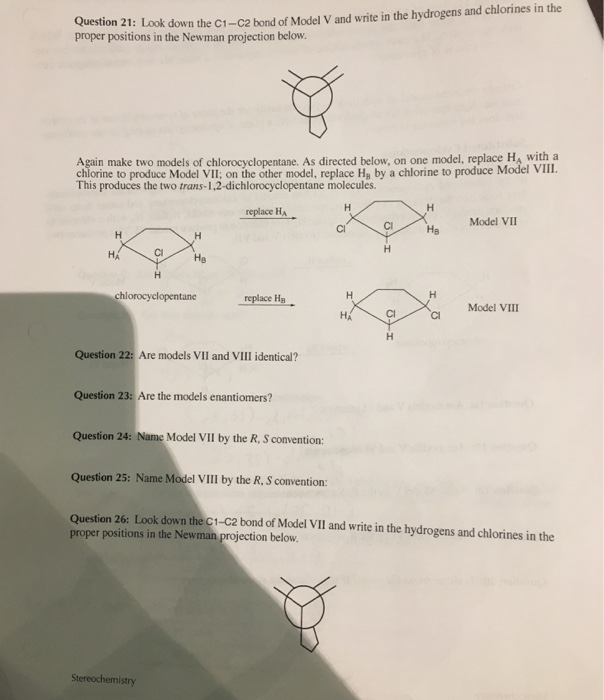 Solved Look Down The C1 C2 Bond Of Model V And Write In T