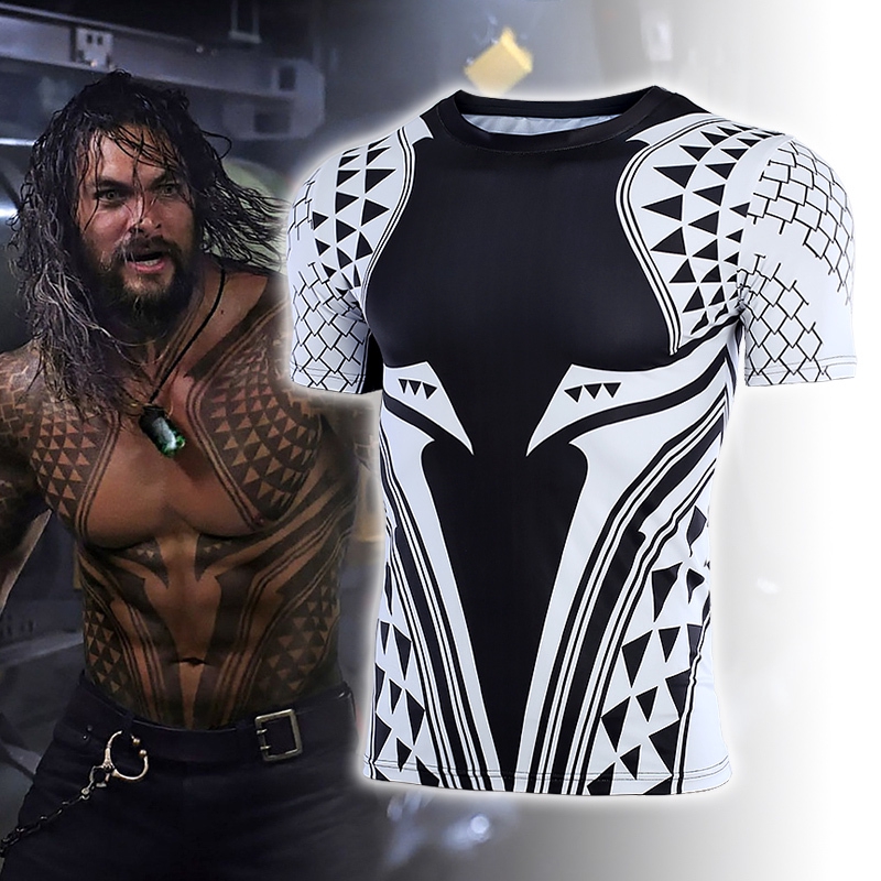 New Aquaman Tattoo T Shirts Men T Shirts O Neck Fashion Tees Slim Summer Superhero Tops