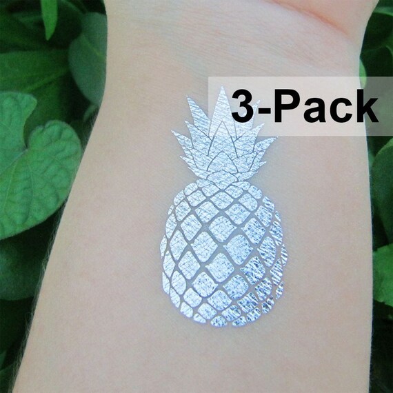 Pineapple Tattoos Silver Pineapples Temporary Tattoos Jewel Flash Tattoos Jewelry Inspired Tattoos For Adults Fruit Party Tattoos
