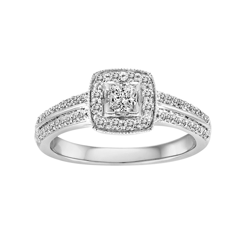 Kohl S Diamond Frame Engagement Ring In 10k White Gold 1 Ct