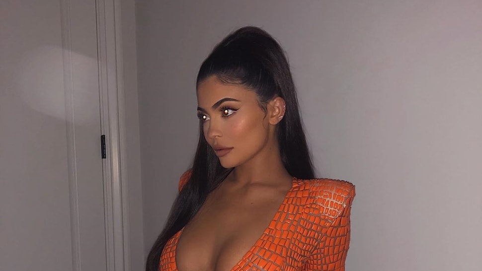 Kylie jenner showed off her killer curves and cleavage for a night out on the town in la. The beauty mogul flaunted the look which also includes a pair of razor sharp shoulder pads. Kylie jenner wore a sheer orange naked dress with major cutouts by julien macdonald for dinner in la.