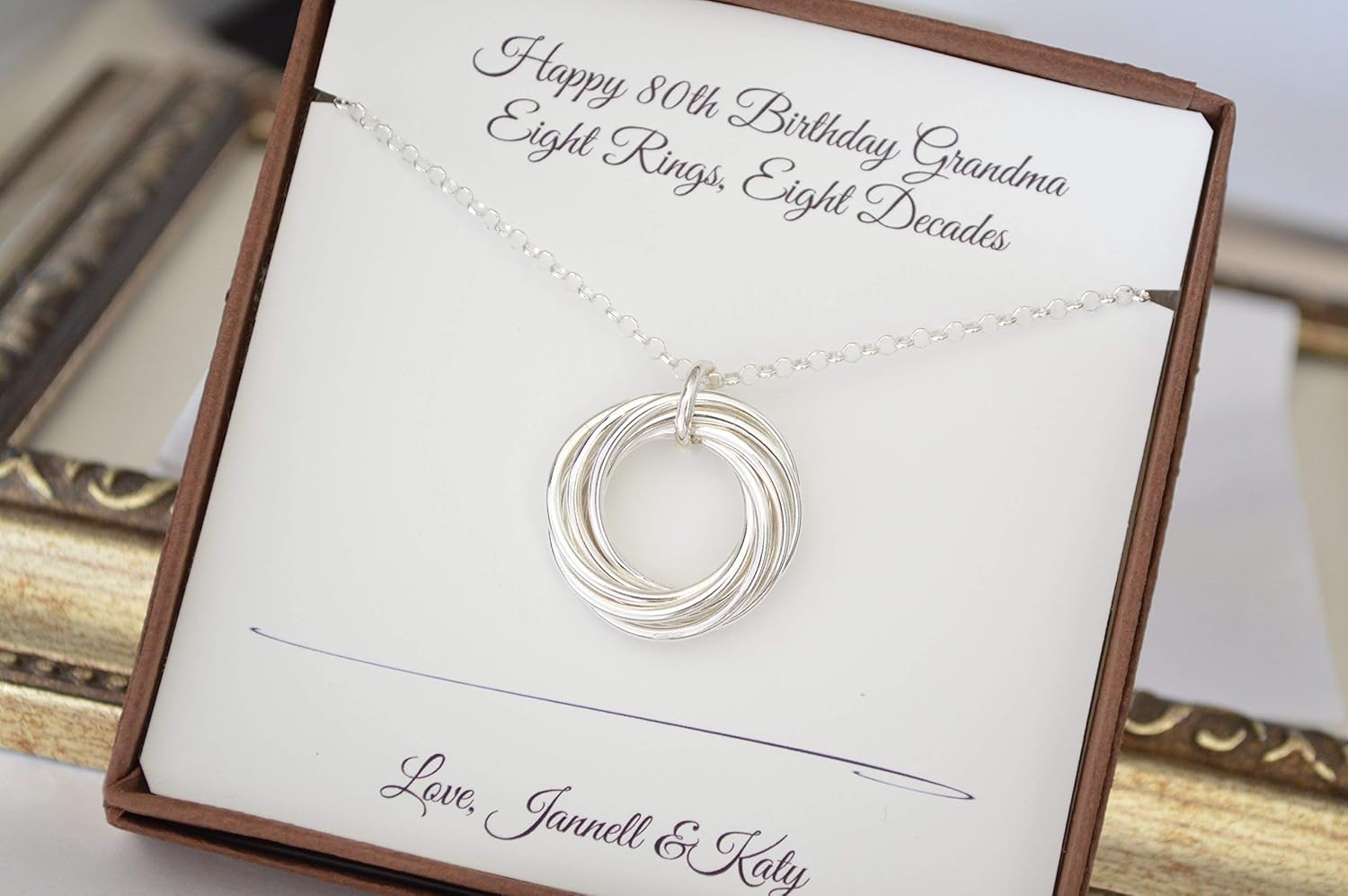 80th Birthday Gift Necklace Sterling Silver Eight Circles Necklace Gift For Her Sister Mom Grandma Great Grandma Aunt Friend