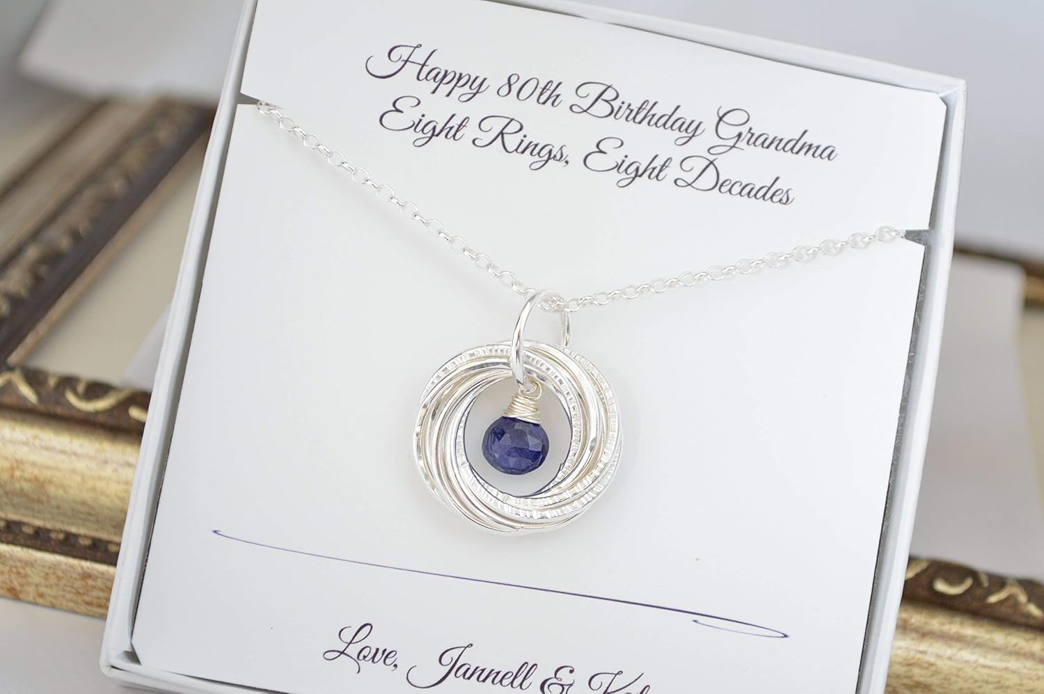 80th Birthday Necklace For Grandma Or Mother 8 Rings