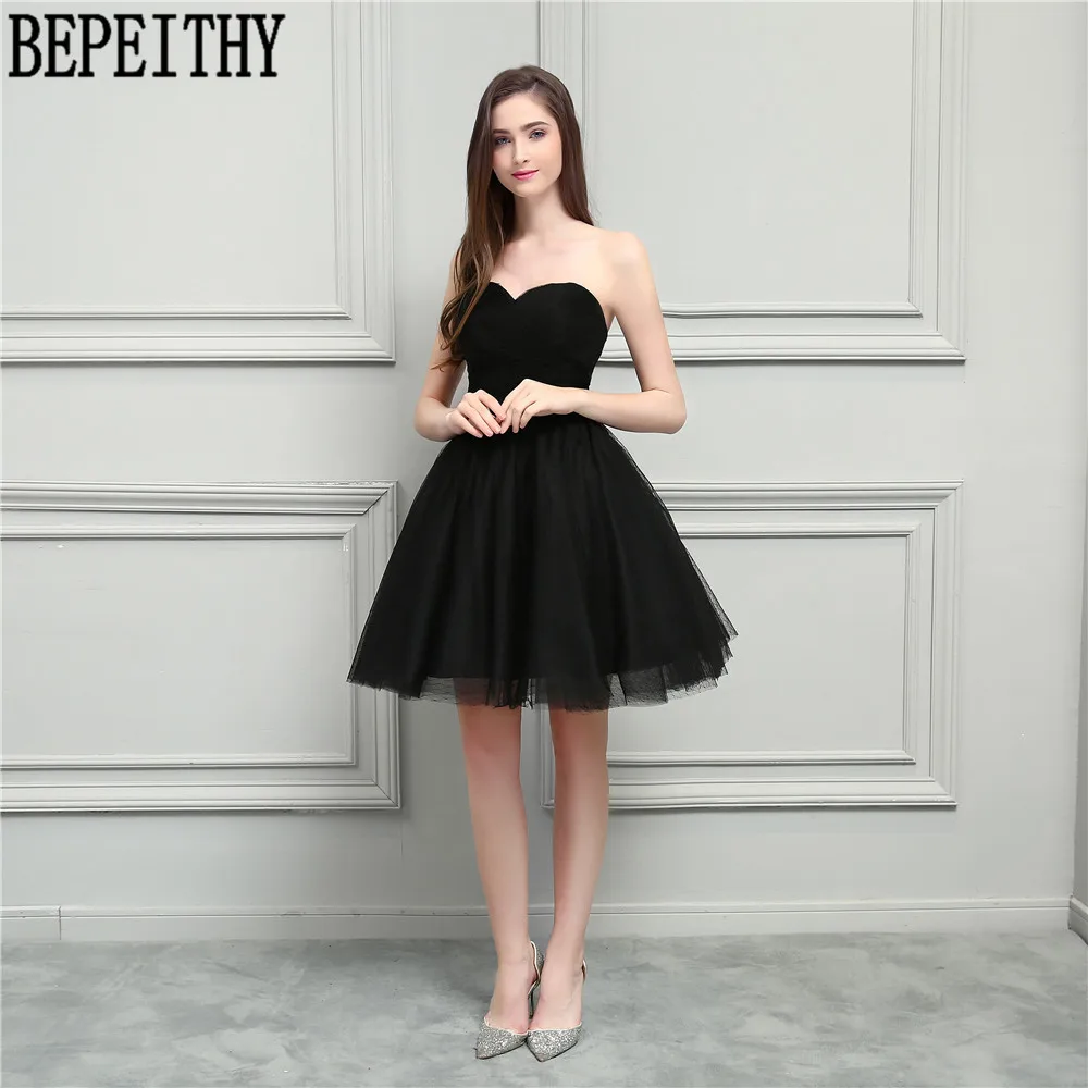 BEPEITHY New Arrival Vestido De Festa Longo V-Neck Little Black Dresses A-Line Short Prom Dresses Bridesmaid Dresses 2018